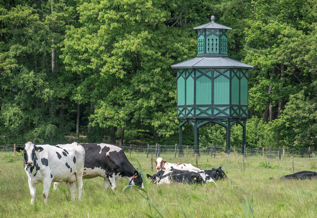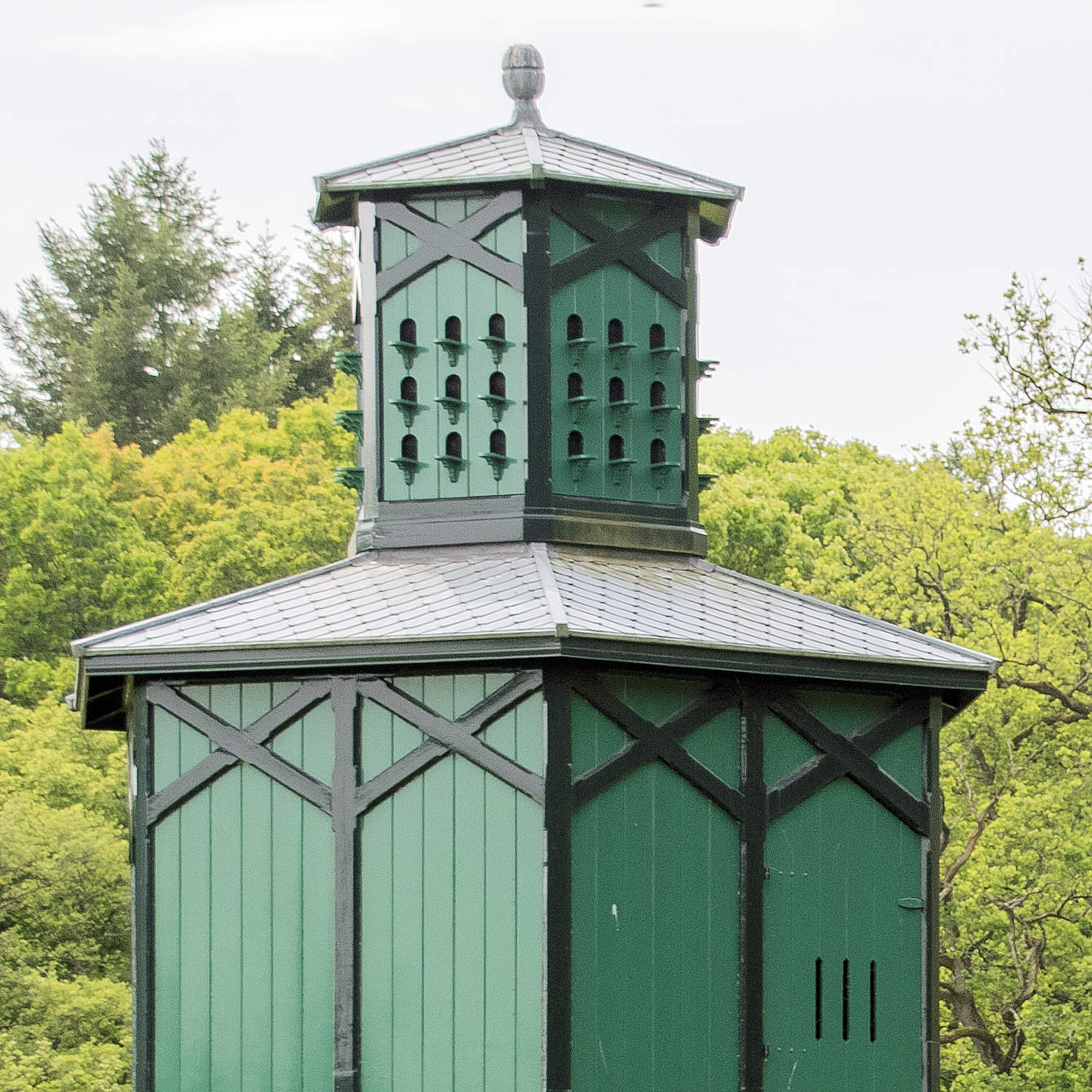 De duiventil heeft neogotische kenmerken, en is markant gelegen midden op het open terrein van een weiland. De duiventil is geplaatst in een zichtas van het landhuis en is, als opvolger van een 18de-eeuwse voorganger, vermoedelijk gebouwd omstreeks 1880. De duiventil is in 1990 gerestaureerd.